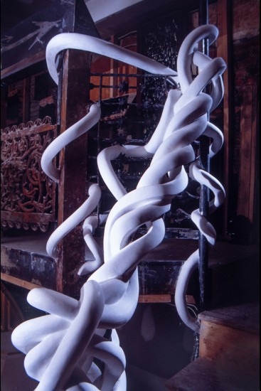 'Squid at Halloween!' was done in 1991-1992. It resides in Henri David's jewelry store Halloween in Philadelphia, PA. The body of the squid was originally sculpted in direct plaster, a mold made of it, and cast in FGR. The tentacles were sculpted directly in Keen Cement on site. The dimensions are 3.5' h x 2'w x 20' l.