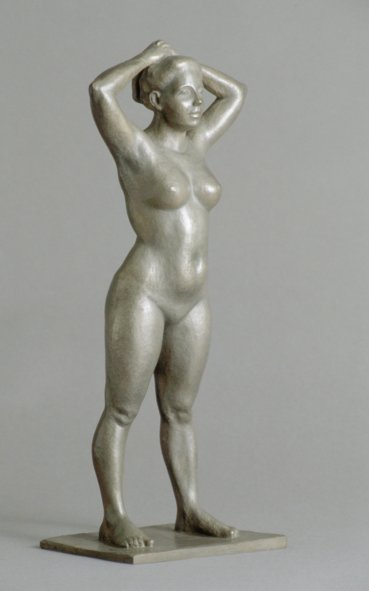 This sculpture is part of the series I sculpted from direct observation of the model Heidi. It is 14 inches tall, cast in bronze and plated in nickel.price: Price available upon request.availablesculpturenudewomanclassicalcontemporaryfemalenakedtraditionalbronzerepresentational